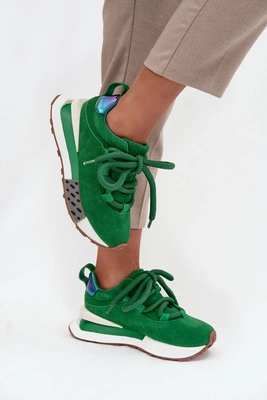 Zamszowe Sneakersy Damskie Na Platformie Z Grubym Sznurowaniem Artiker 55C0136 Zielone