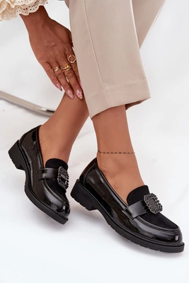 Lakierowane Mokasyny Damskie Z Ozdobną Klamrą S.Barski HY52-546 Czarne