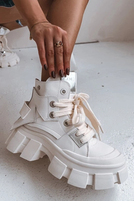 Skórzane Ocieplane Sportowe Botki GOE SS2N4055 Białe