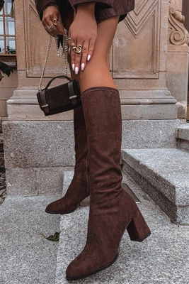 Kozaki Damskie Na Słupku Z Eko Zamszu Czekoladowe Yelisse