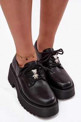 Półbuty Damskie Z Przypinką Eko Skórzane Czarne Laurea