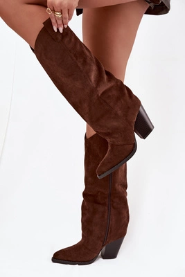 Ocieplane Kozaki Kowbojki Na Słupku Z Eko Zamszu Czekoladowe Mavine
