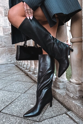 Kozaki Damskie Wsuwane Na Szpilce Z Przeszyciem Czarne Olyvia