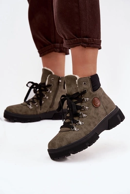 Ocieplane Trapery Damskie Na Platformie Ciemnozielone Zaraine