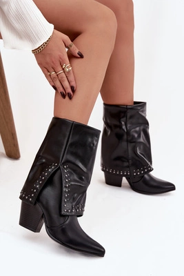 Botki Kowbojki Z Wywiniętą Cholewką I Zdobieniem Ocieplane Czarne Inessia