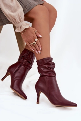 Botki Damskie Na Szpilce Z Marszczoną Cholewką Zamek Bordowe Ulisse