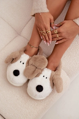 Futrzane Kapcie Damskie Pieski Beżowe Faylen