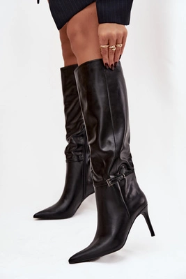 Kozaki Damskie Na Szpilce Z Paskiem Czarne Lisanne