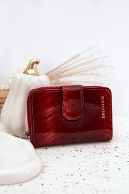 Lakierowany Portfel Damski Z Drobinkami Czerwony Luretta
