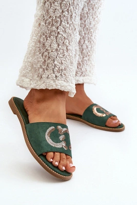 Damskie Płaskie Klapki Z Cekinami S.Barski KV27-052 Zielone