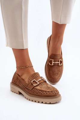 Damskie Mokasyny Z Cyrkoniami Jasnobrązowe Ralrika