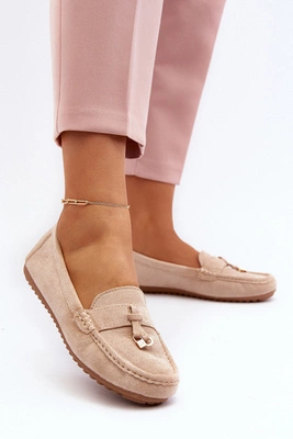 Zamszowe Mokasyny Damskie Ozdobą Beżowe Daphikaia