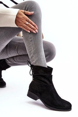 Zamszowe Botki Damskie Na Płaskim Obcasie Czarne Klemovia