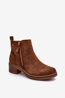 Zamszowe Botki Na Niskim Słupku Brązowe Laurisa