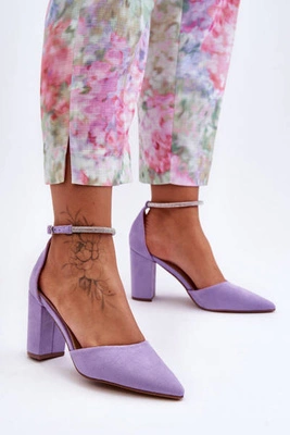 Zamszowe Klasyczne Sandały Na Niskim Obcasie Fioletowe Honeymoon