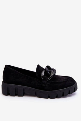 Wygodne Zamszowe Damskie Mokasyny Czarne Lucca