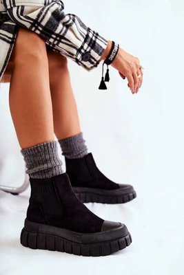 Zamszowe Wsuwane Botki Skarpetkowe Czarne Hope