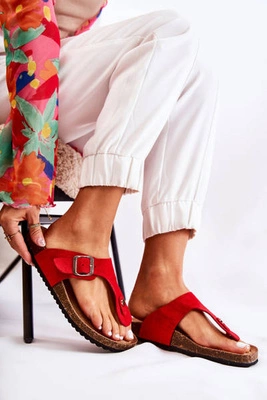 Klapki Damskie Japonki Na Korku Czerwone Elina