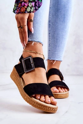Zamszowe Sandałki Na Koturnie Czarne Louisiana