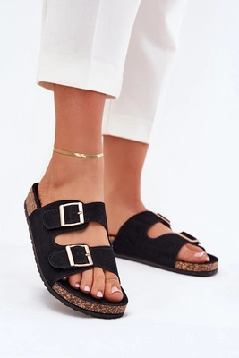 Klapki Damskie Na Płaskim Obcasie Z Klamrą Czarne Lanoni