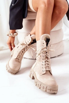 Zamszowe Ocieplane Workery Z Kamieniami Beżowe Hadley