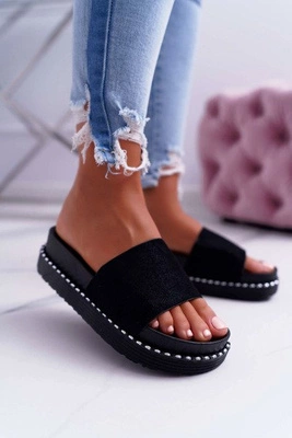 Damskie Klapki Na Korku Z Kryształkami Czarne Do It!