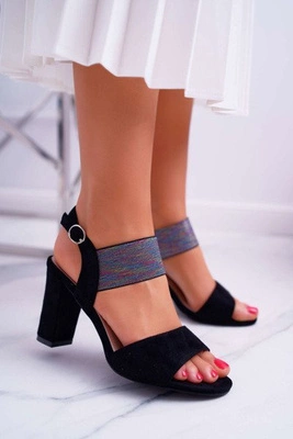 Sandały Damskie Na Słupku Zamszowe Czarne Geometric