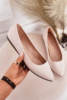 Delikatne Baleriny W Szpic Zamszowe Beżowe Dermeno