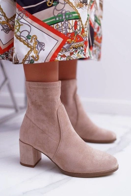 Botki Damskie Na Obcasie Wiosenne Sergio Leone Wsuwane Beżowe LikeStar