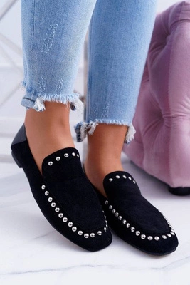 Balerinki Damskie Lu Boo Czarne Zamszowe Lordsy z Ćwiekami Odessa