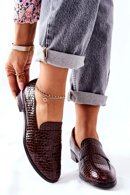 Lakierowane Mokasyny W Zwierzęcy Wzór Brązowe Lenie