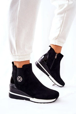 Zamszowe Botki Na Koturnie Czarne Lunelle