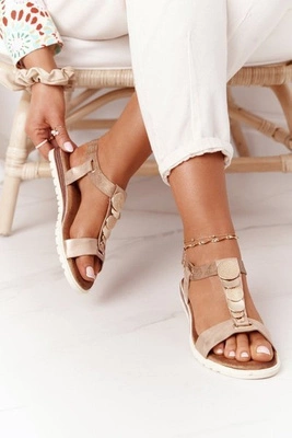 Wiązane Ażurowe Sandały Na Słupku Beżowe Lorette