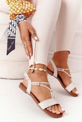 +6Skórzane Sandały Z Cyrkoniami S.Barski 5541 Beżowe