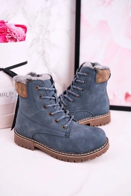 Dziecięce Botki Traperki Ocieplone Futerkiem Niebieskie London