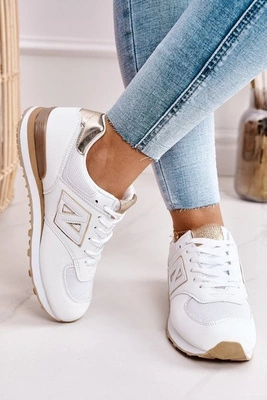 +2Damskie Sneakersy Na Platformie Biało Beżowe Riri