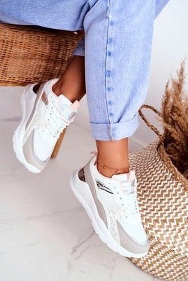 Sportowe Damskie Buty Beżowe Złote Elementy Clementine