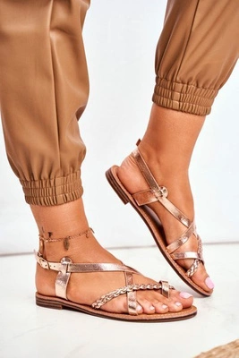 Damskie Płaskie Sandałki Rzemyk Różowe Złoto Laurence