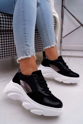 Sportowe Damskie Buty Gruba Podeszwa Czarne Cardamon
