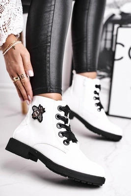 +1Botki Damskie Płaski Obcas Glany Lakierowane Białe Sergio Leone BT530