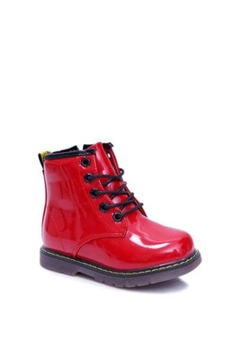 Dziecięce Botki Ocieplane Futerkiem Trapery Lakierowane Czerwone Debi