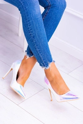 Szpilki damskie Lu Boo Srebrne Opalizujące Szpilki Mylenn