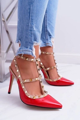 Szpilki damskie VICES Lakierowane Czerwone Z Ćwiekami Dżety Valenti
