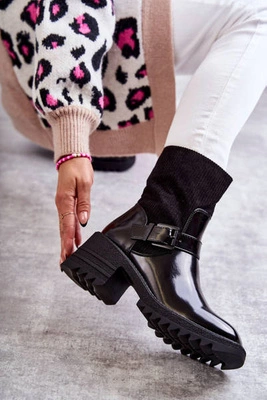 Damskie Botki Ocieplane Na Masywnym Obcasie Czarne Marinela