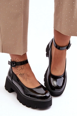 Damskie Lakierowane Półbuty Na Masywnym Obcasie Czarne Lemmitty