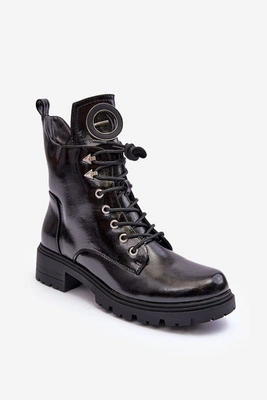 Lakierowane Botki Workery Z Ozdobą Czarne Emmber