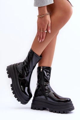 Botki Sztyblety Lakierowane Damskie Czarne Pavo