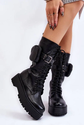 Damskie Kozaki Glany Z Nerką Sznurowane Czarne Lillien