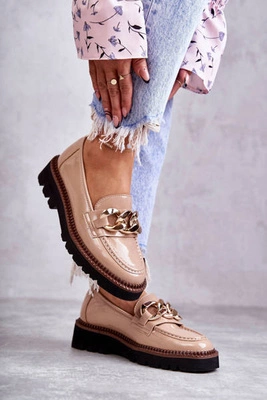 Lakierowane Półbuty Loafery Na Platformie Beżowe Reidun
