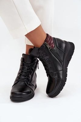 Skórzane Ocieplane Botki Damskie Na Platformie Vinceza 66803 Czarne